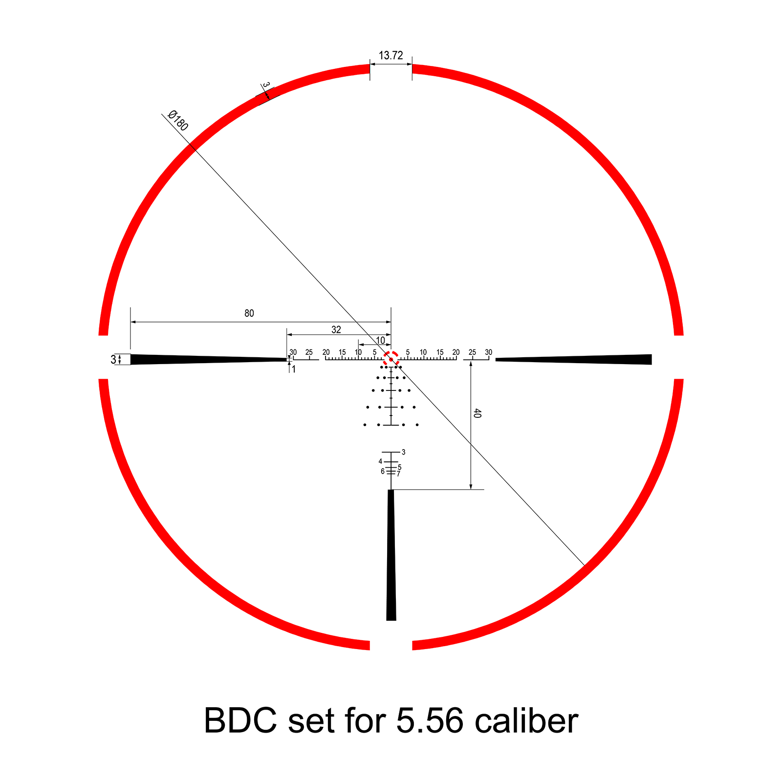 WHITEEAGLE 1-10×28 – luneta posiadająca siatkę dalmierzową RAR-1 w pierwszym planie o ekstremalnie niskiej dyspersji,